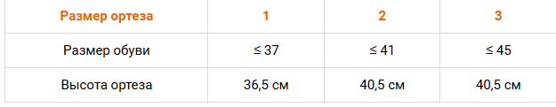 Подходит как для правой, так и для левой ноги.Высота ортеза зависит от выбранного размера.