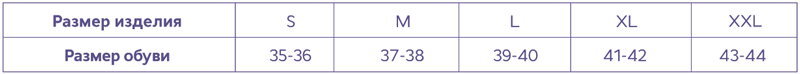 Таблица размеров